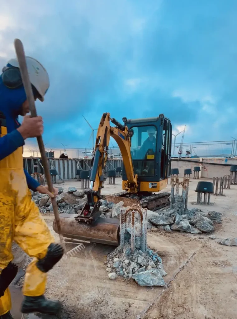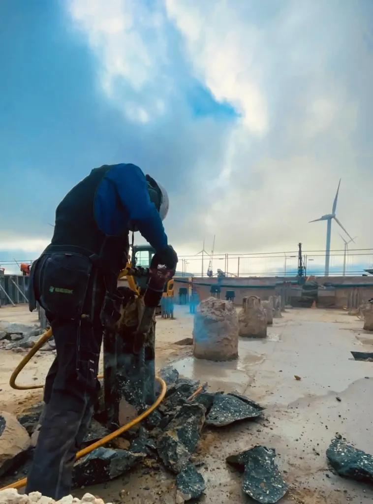 BEEK voert het nauwkeurig inzagen van betonnen palen uit met lucht- en watertechniek, waarbij het gebruik van de verplichte PBM’s ervoor zorgt dat personeel optimaal beschermd is. Blootstelling aan fijnstof voor personeel en omgeving wordt tot een minimum beperkt en omliggende constructies blijven intact. Deze methode garandeert een veilige, efficiënte en gecontroleerde voorbereiding van het terrein voor vervolgwerkzaamheden.